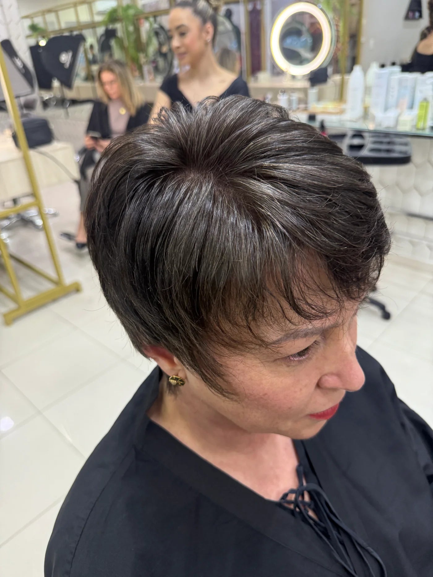 Sou professora e acordo às 5h30. Não tenho paciência pra rotina elaborada de beleza. Os fios brancos começaram a aparecer muito na testa e nas têmporas, exatamente onde todo mundo vê